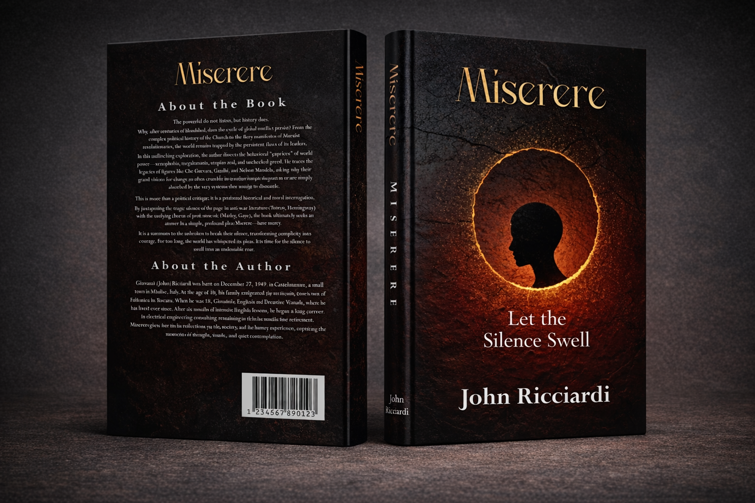 Miserere: Let the Silence Swell is a profound odyssey into history, power, and mercy. Inspired by five significant musical compositions—including Gregorio Allegri’s 1638 masterpiece—the book examines how lyrics and historical ‘caprices’ impact global behavior today. From the rise of revolutionary ideologies to the collapse of modern regimes, Ricciardi explores the enduring realities of xenophobia, narcissism, and the quest for legacy. Miserere (Latin for ‘have mercy’) serves as a plea for compassion in a world often blinded by its own illusions, reminding us that while power lacks logic, every individual’s story matters.